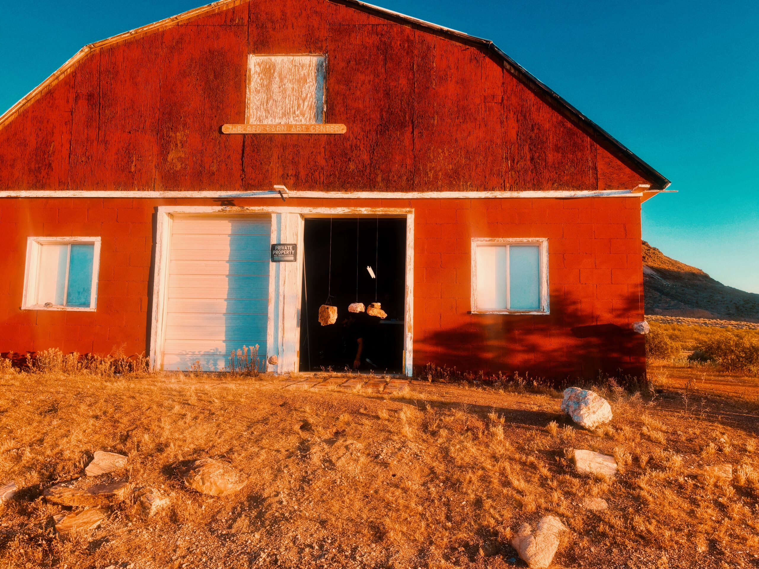 The Red Barn Arts Center is notable for a number of reasons, but perhaps most well known as the venue in which Goldwell Museum holds events and artist residents, making the barn an arts studio / gallery during these times. Turns out that it is also genuinely usable as a sound space. Donated by Barrick Gold to the museum in the 00’s, it stands as a practical example of patronage that continues to shape artistic activity in Rhyolite. Its concrete floor, open structure, and weathered tin roof create a strong acoustic environment for musicians and sound artists.